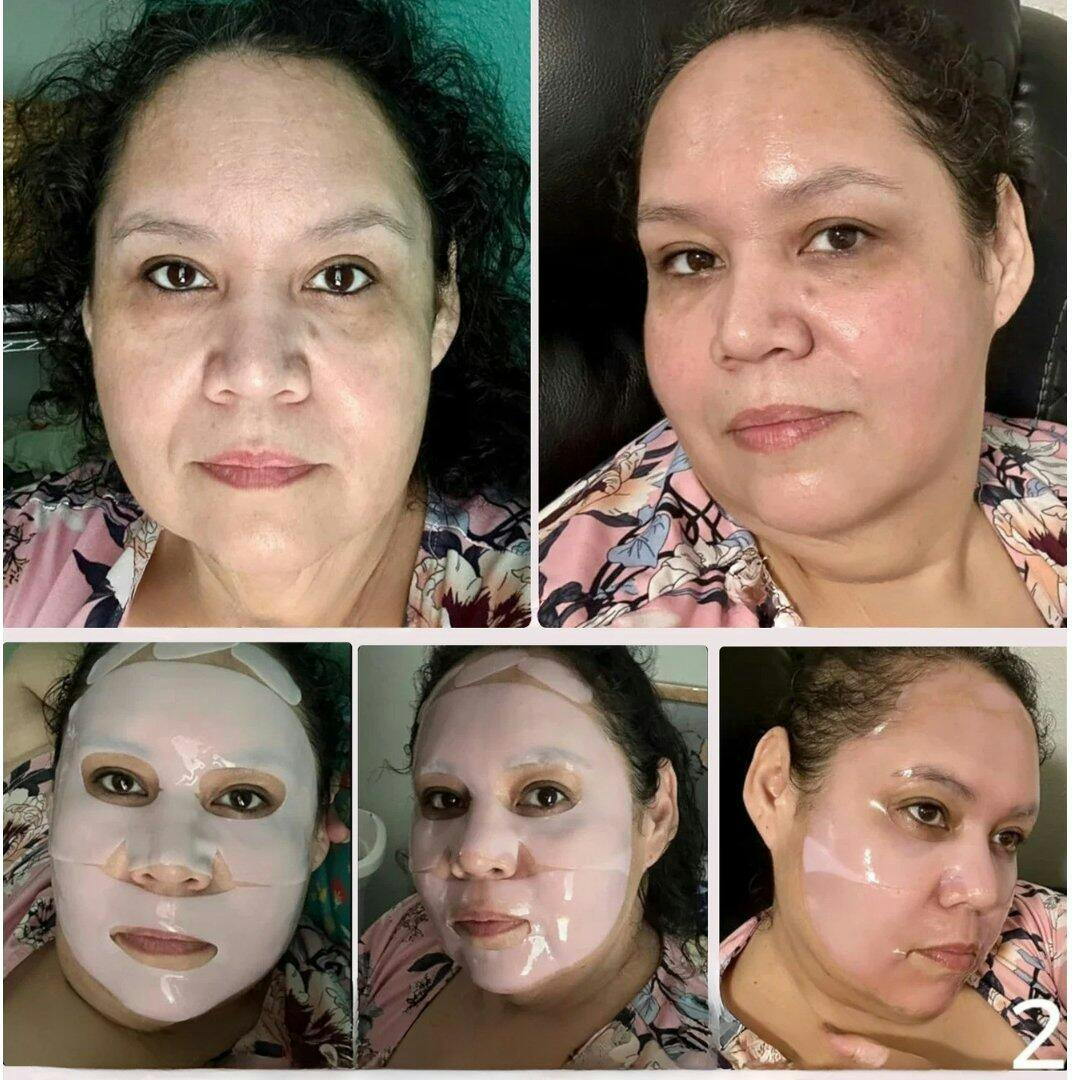 La mascarilla hidrata profundamente, reafirma la piel, ayuda a reducir líneas de expresión y mejora la elasticidad gracias a su mezcla de colágeno, ácido hialurónico y extractos botánicos. Deja tu piel más suave, luminosa y rejuvenecida.